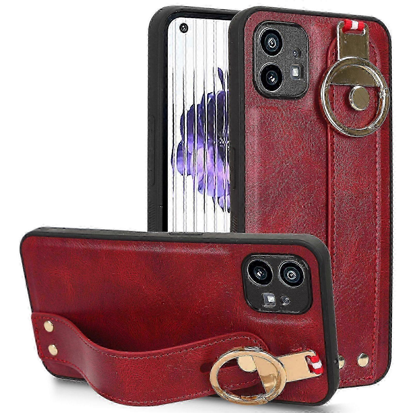 For Nothing phone (1) 5G Wristband Kickstand Phone Cover Leather Coated PC+TPU Phone Case with Neck Strap