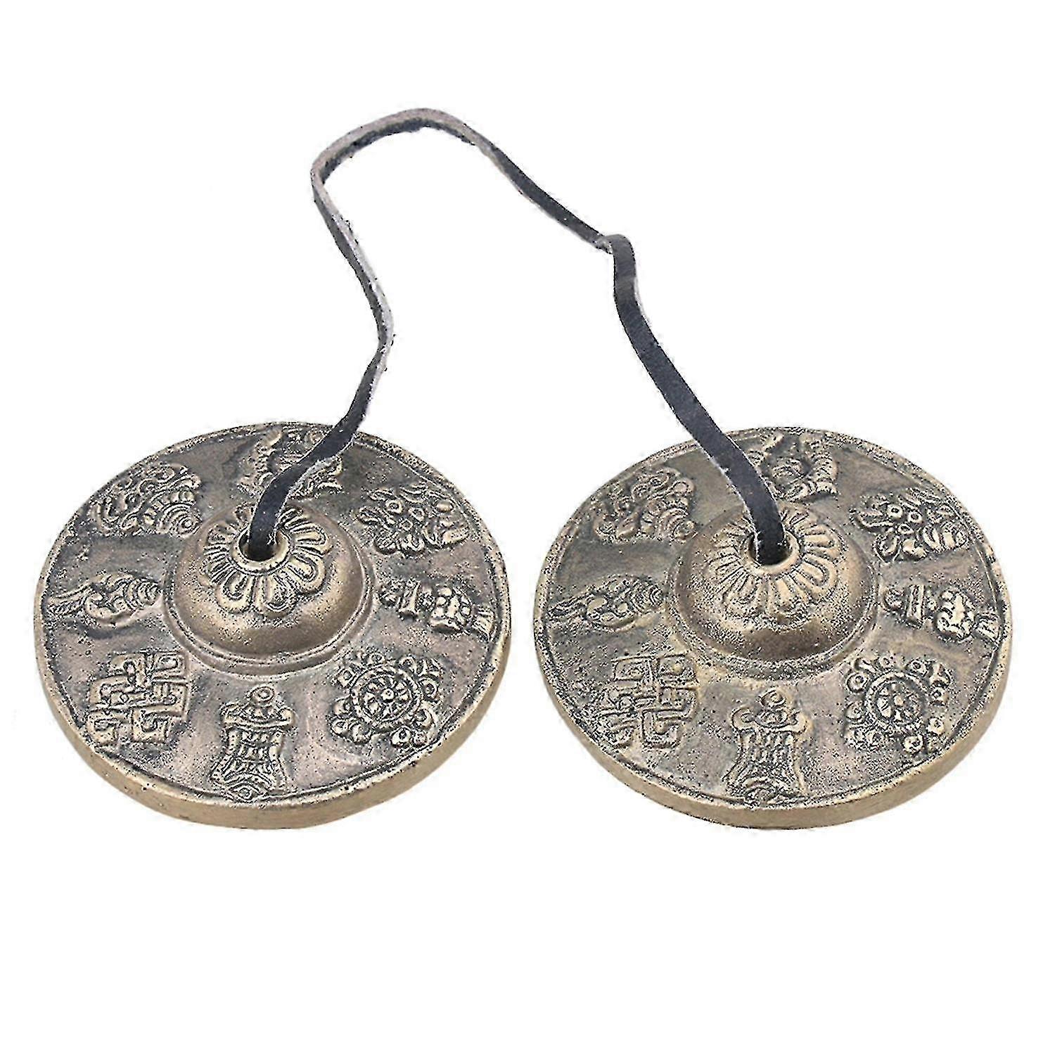 For Vintage Brass Color Eight Auspicious Symbol Tibetan Buddist Cymbals Bell WS5502