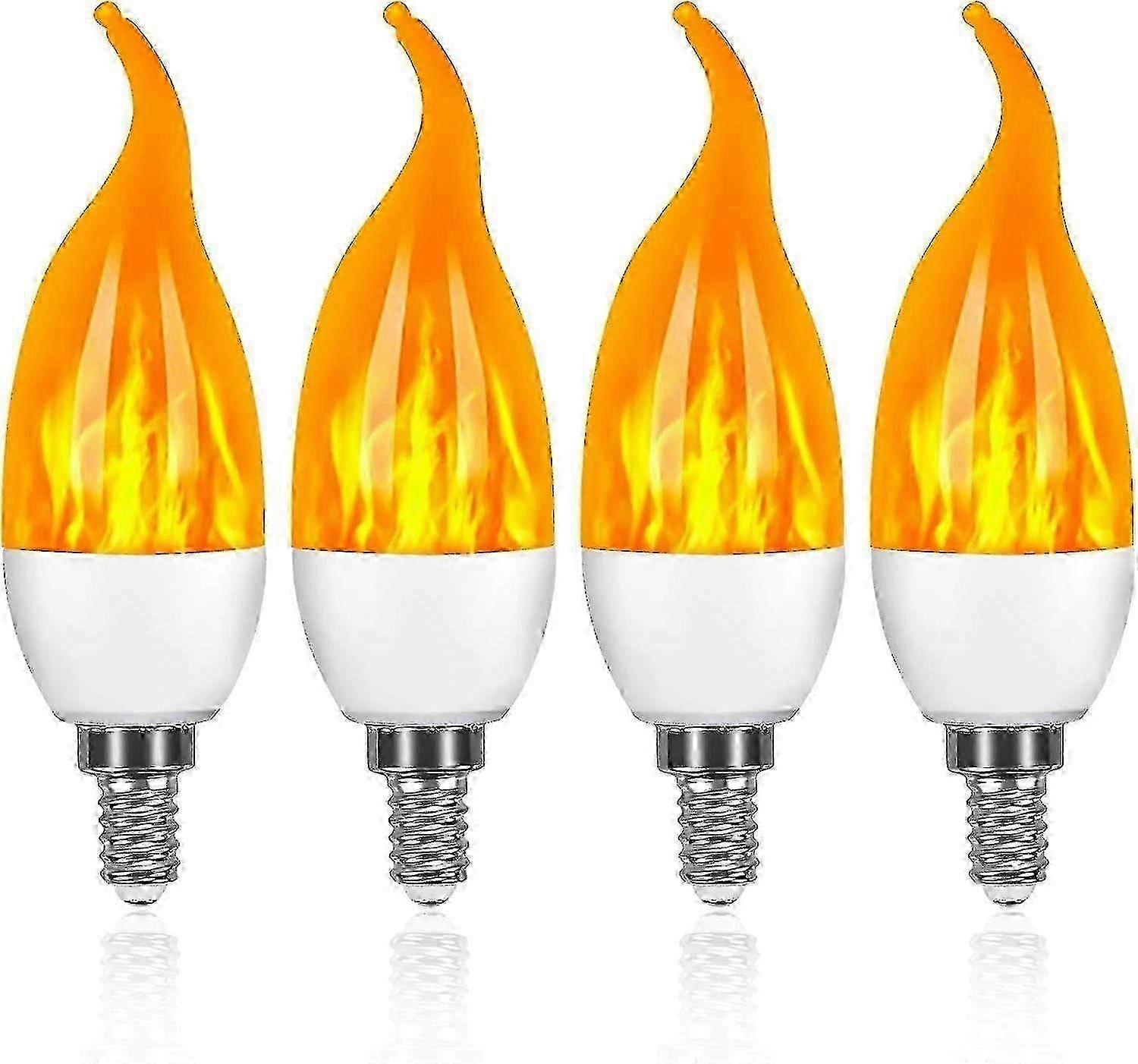 E14 Flame Effect LED Bulb - 3W Dimmable Vintage Style Flickering Light with 3 Modes for Chandeliers & Lamps (4 Pack) - Decorative Warm White Bulb