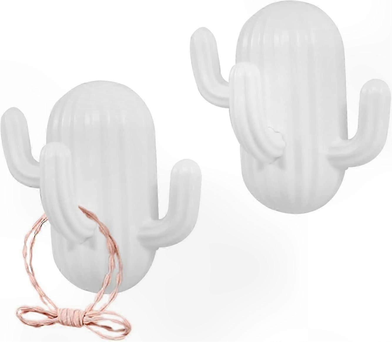 For 2024 Set Of 2 Cute Adhesive Cactus Shaped Hooks - Decorative Wall Hooks, Adhesive Hair Rope Hooks, White, Wall Decor