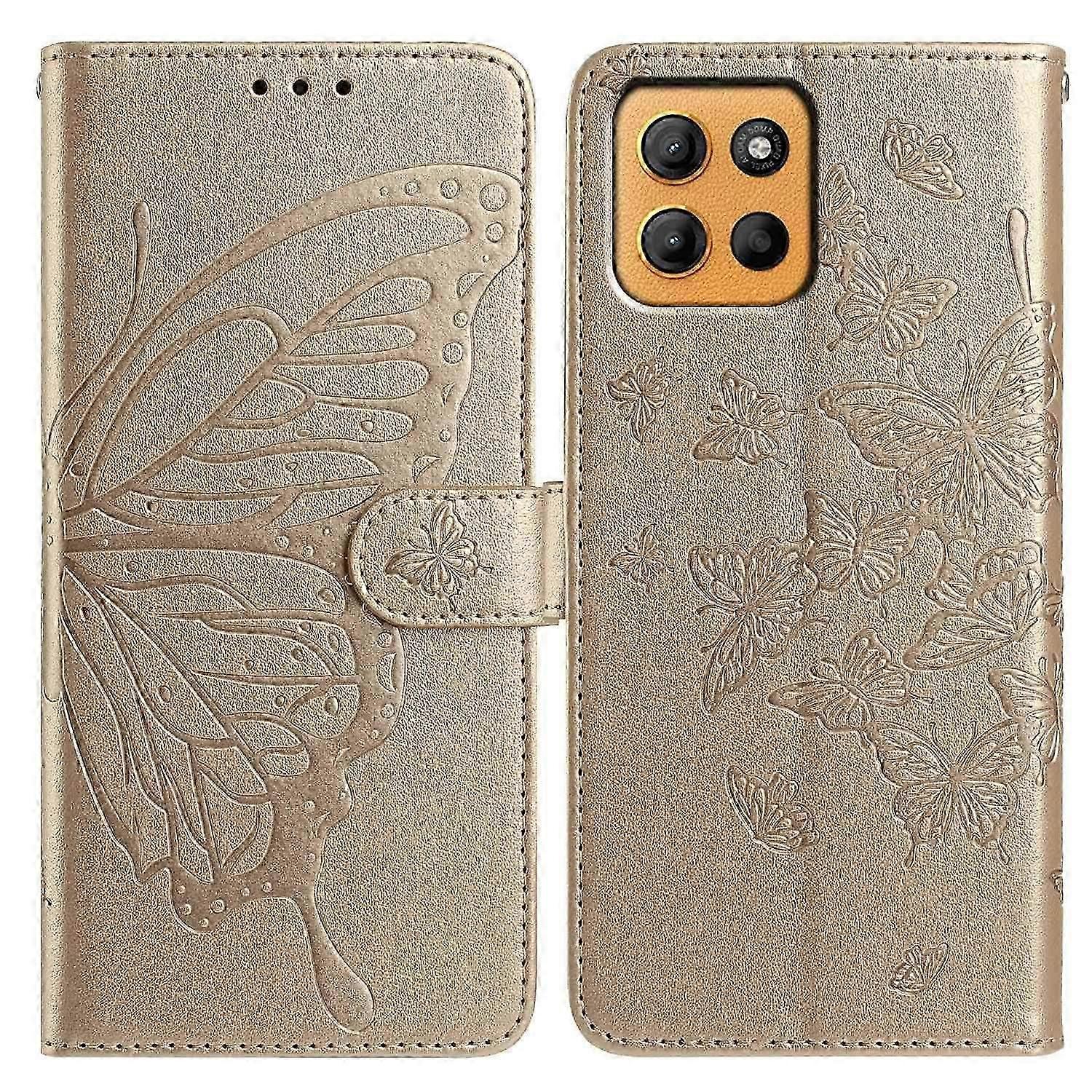 For Motorola Moto G15 4G Case Butterfly Imprinted Wallet Stand PU Leather Flip Phone Cover with Stra