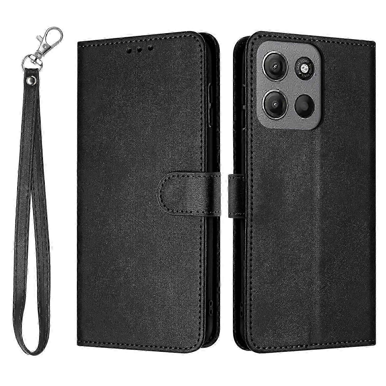 For Motorola Moto G15 4G Case Flip Stand PU Leather Wallet Phone Cover Calf Texture