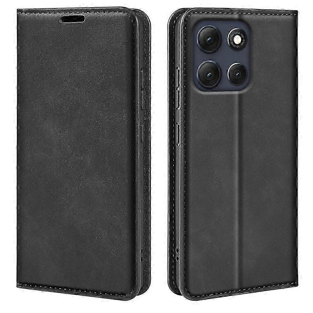 For Motorola Moto G86 5G Case Skin Touch Leather Wallet Phone Cover Black