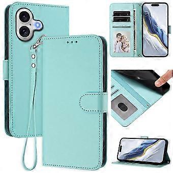 For iPhone 17 Leather Case Wallet Stand Phone Cover with Wrist Strap