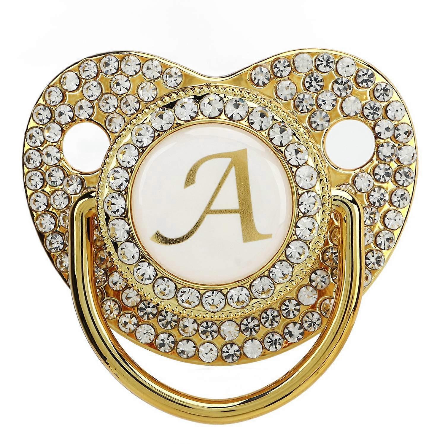 Baby Bling Pacifier Golden Pacifier Clip Letter Curved Pacifier with Dust Cover for Newborn Letter A