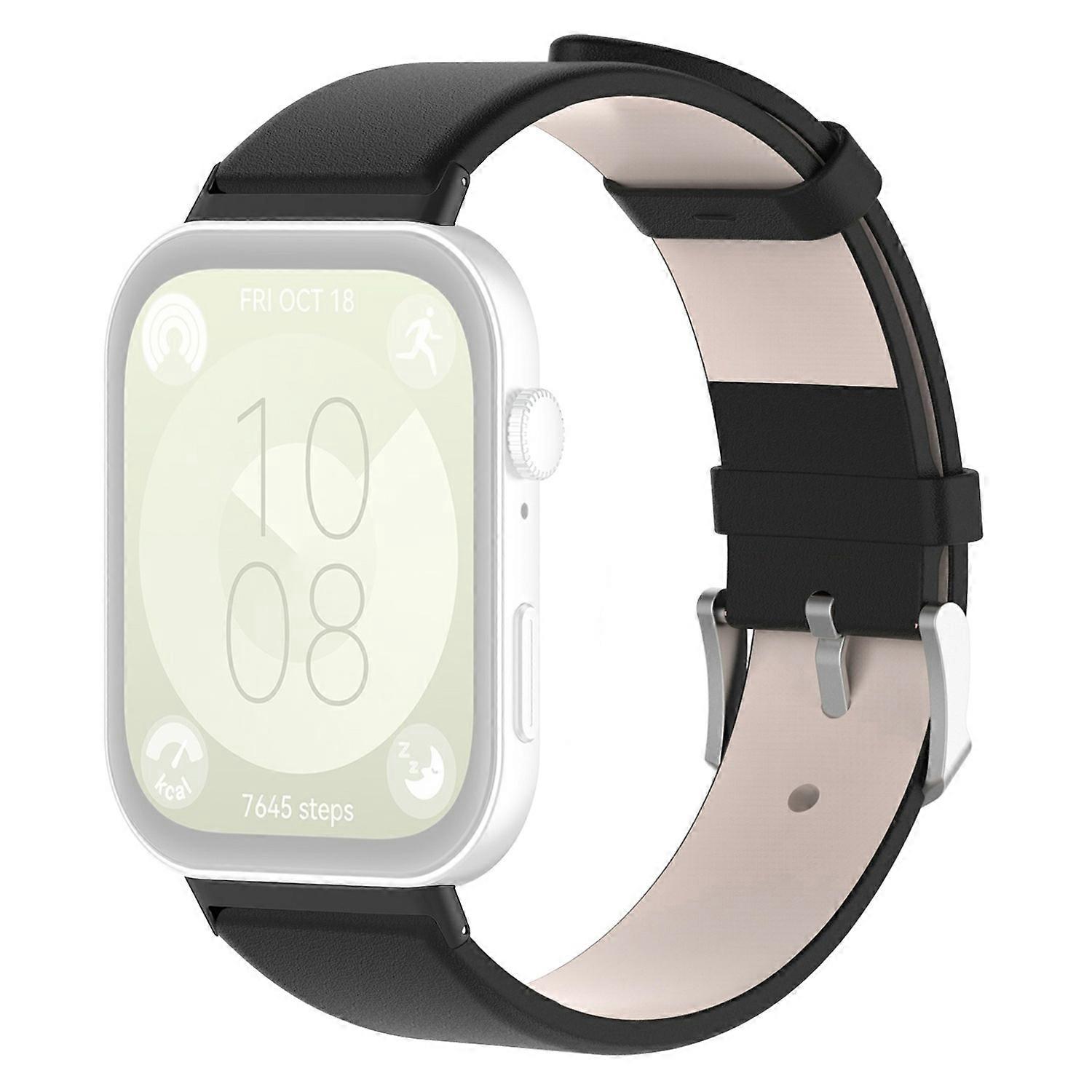 For Huawei Watch Fit 3 Watch Band Adjustable Leather Wrist Strap - Black