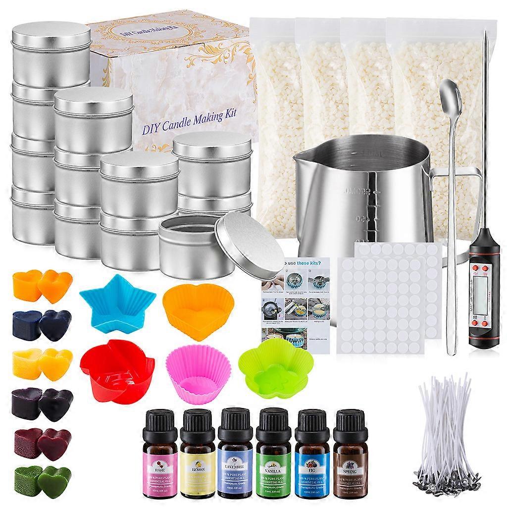 brand new and high quality Features: Beginner Starter Kit Everything you need to create your own candles at home is in this package. The package includes 600ml pot, 4 pack 2 LB soy wax, 112 for glue dots, 20 wicks, 1 mixing spoon, 1 thermometer, 12 candle tins with lids & more. Easy to Make Whether you are a beginner or a professional, this candle making kit allows you to easily make your own candle! candle making supplies contains all the accessories for making candles, you can enjoy the fun of making candles. Enjoy Your Craft for Time This set is very suitable for family art project. The soy wax in the kit can make 28fl oz candles, so you can use other candle jars or reuse the glass tins. Party Favors & Souvenirs This kit is suitable for various holiday gifts. You can also use your DIY candles as a more meaningful gift for your loved ones, and write your wishes on the label. Candle Making Therometer: Fahrenheit and Centigrade scale makes it more easier to use; the temperature range of measurement: 0-220F and -10100; Great for candle making, coffee, milk, drink, cooking etc Specifications: Name: Candle Making Kit Material: Stainless Steel,wax, Size:as the pic shows Color:clorful Package: 1 x stainless steel cup with 600ml scale 4 packs 200g beeswax 6 wax core clamps 1 spoon 2.5oz tin cans silver 12 Two stickers 50 wax cores of 12.5 for cm A thermometer 6 bottles for essence (rose; vanilla; lavender; lemon; spring; fig) Six kinds of color blocks Five kinds of dies A manual Notice: 1.Since the size above is measured by hand, the size of the actual item you received could be slightly different from the size above.. 2.Not RetailPackage. 3. Due to monitor settings and lighting conditions, colors may vary slightly from the listed photos.