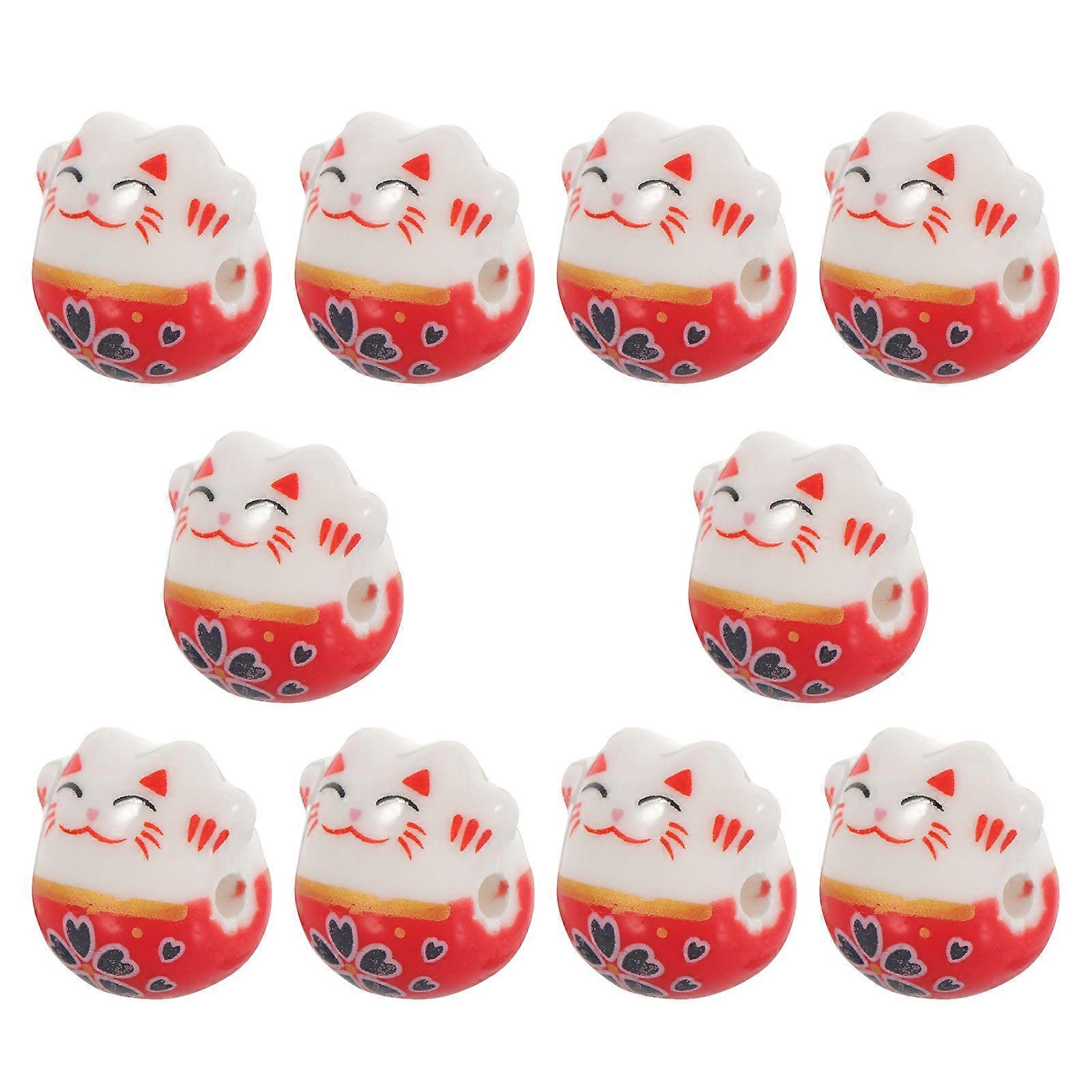 Ceramic Bead Supplies Cat Shape Diy Supplies Red Ceramic Material Used for Diy Accessories 10Pcs