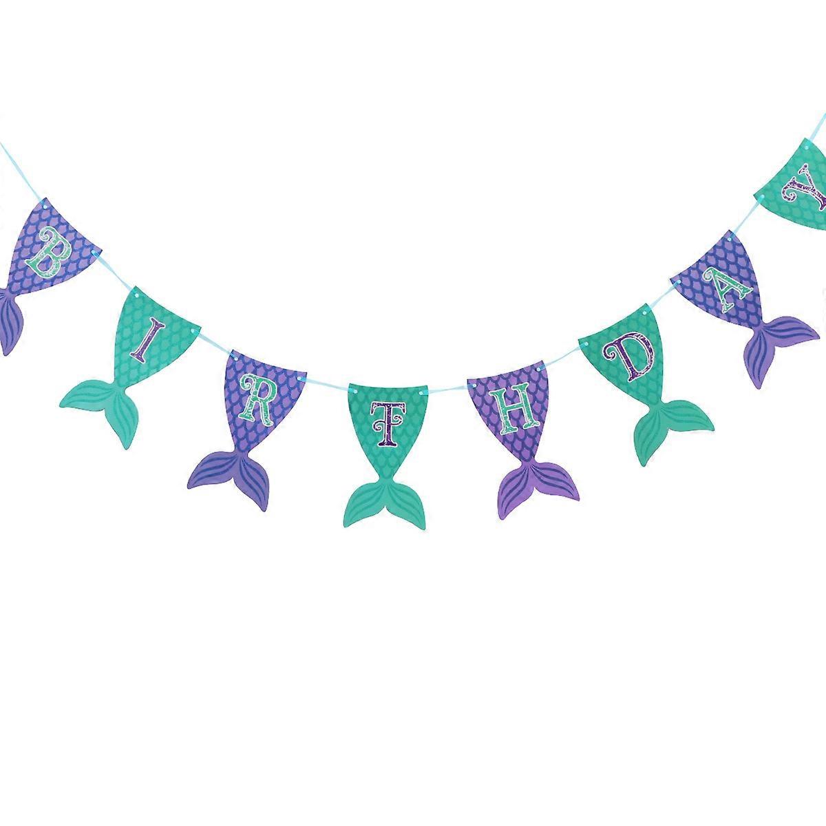Birthday Party Supplies Mermaid Letter Pull Flag Decoration Assorted Color 20.8x12x0.1cm Party Banner 1Pack