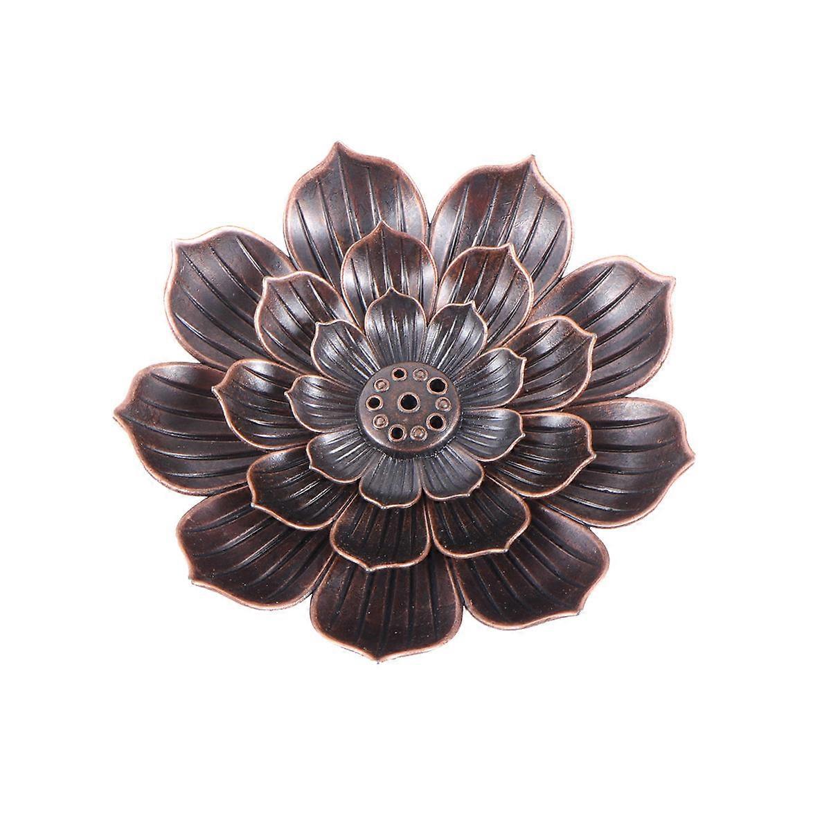 Lotus Flower Burner Zinc Alloy Incense Stick Holder Tea House Use Dark Brown 9.00X9.00X2.00CM Mood Calming 1Pcs