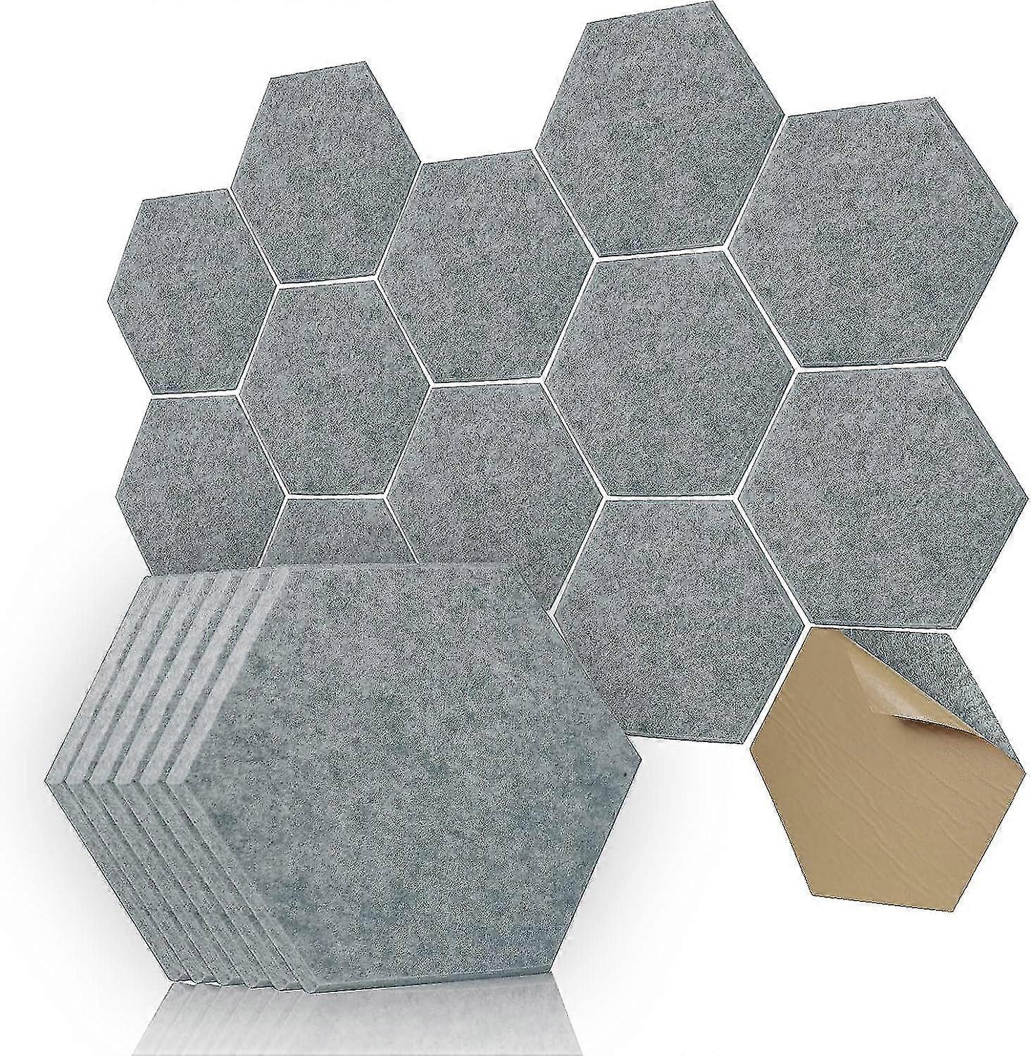 Acoustic Panels Hexagon Self-Adhesive, 12 Pack Soundproof Wall Padding, 12" X 10" X 0.4" Absorption Panel Used in Home and Offices(Grey)