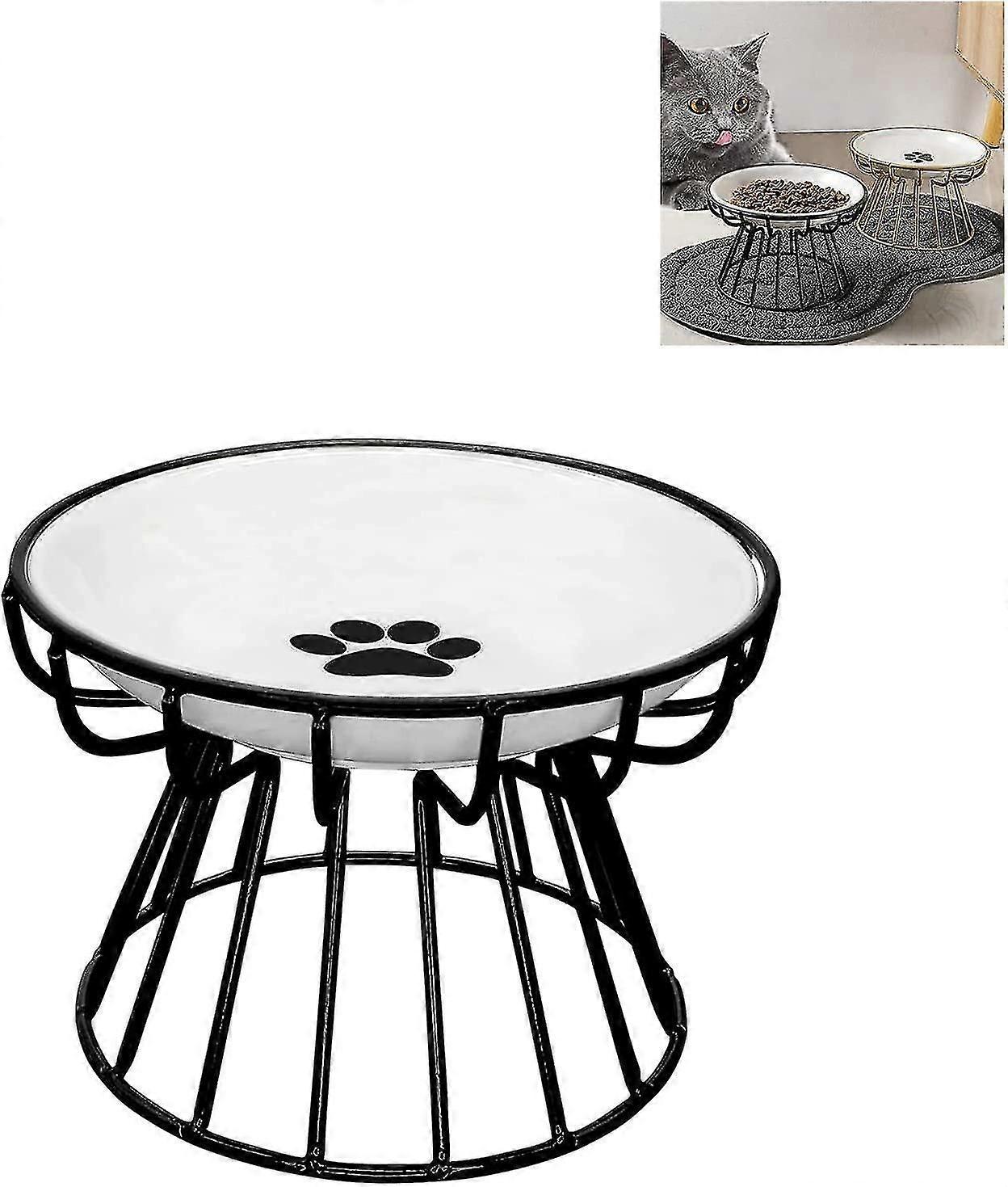 Whisker-friendly Anti-vomit Cat Plate,elevated Bowl-raised Ceramic Cat Bowl With Metal Stand, Food & Water Anti Vomiting Shallow Ceramic Cat Dish