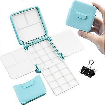 Watercolor Palette, 24 Empty Paint Palette Box Mini Size with 2 Foldable Palettes,Water Container an