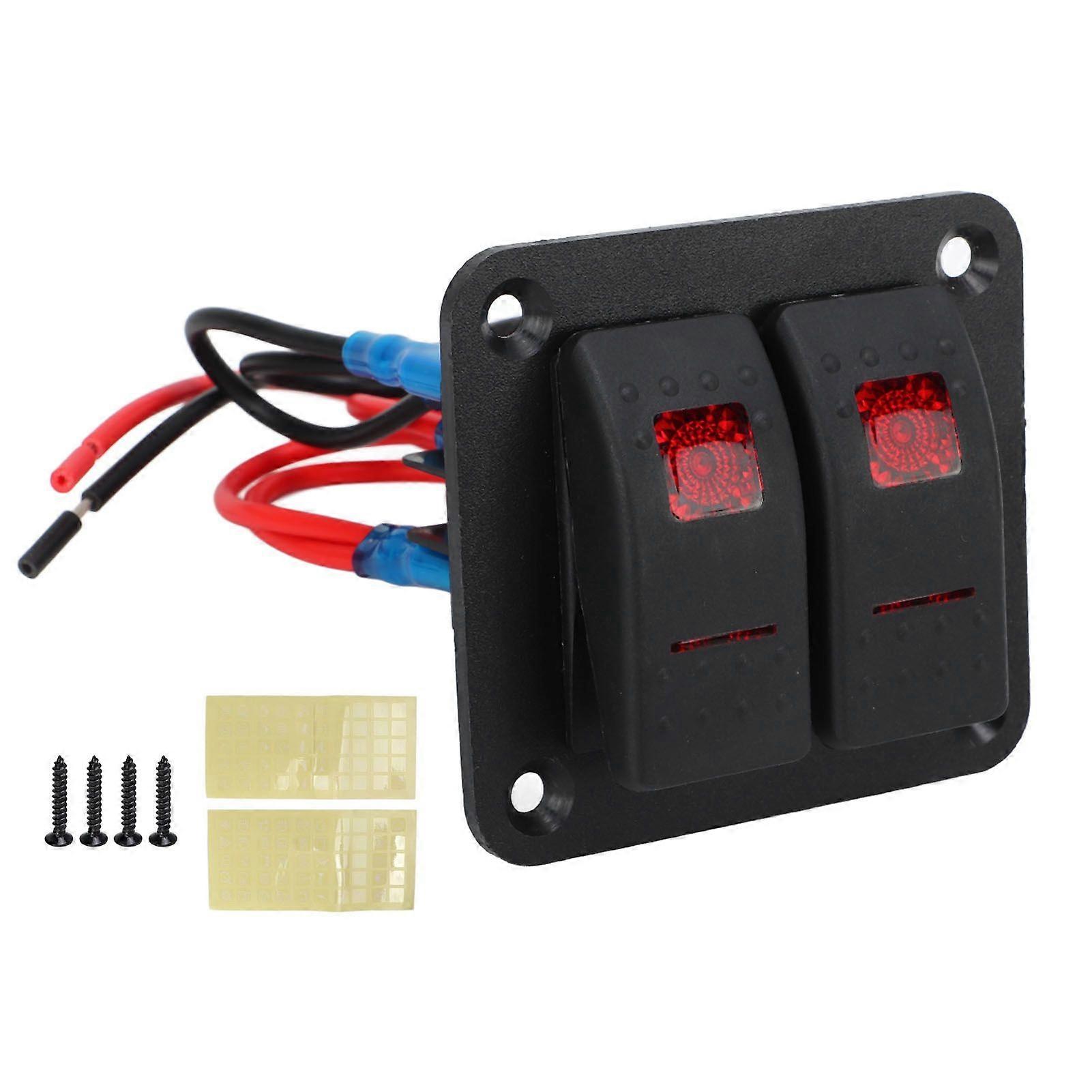 Rocker Switch Panel 2 Gang On Off Pre Wired Red LED 12V 24V 20A 10A with Marine Vehicle Labels