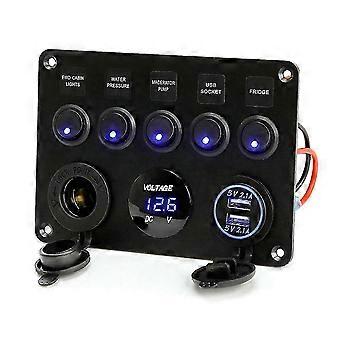 Boat Switch Panel Car Switch Panel Waterproof Digital Voltmeter Dual USB Port Outlet Combination Marine LED Rocker Blue
