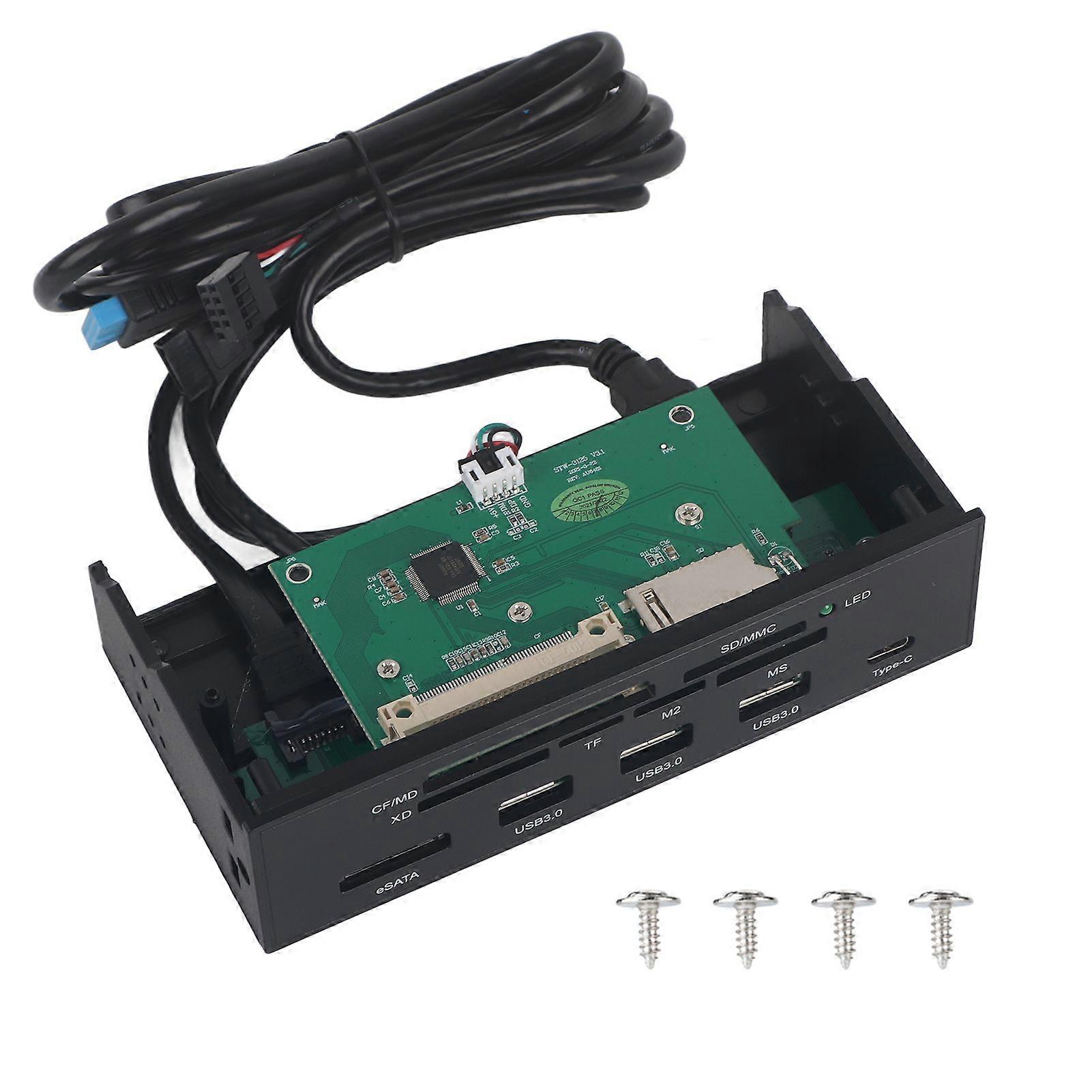 Description:This is a multi-functional card reader that features three USB 3.0 ports, one USB 3.1 port, one eSATA port and 6 card slots. It supports M2, MSO, Memory, MS, XD, 64G CF card and let you transfer files between your flash media and computer easily and quickly. It can be easily mounted into 5.25" drive bay of your computer case for added card reading capabilities.Features: High speed front USB 3.0 interface for an efficient and effortless data transfer. 6 card slots offer quick and easy access to the most common-used card formats, support M2, MSO, Memory, MS, XD, 64G CF card. High quality material ensure durability, LED indicator make you keep an eye on work status. Equipped with eSATA and USB 3.1 port to meet your needs. Can be easily and neatly installed into a 5.25" drive bay on your desktop to give you convenient access. Specification:Reader speed: USB 2.0Transmission Interface: USB 3.0, USB 3.1, eSATASupport: M2, MSO, Memory, MS, XD, 64G CF cardSize: 14.9 x 10 x 4.2cm / 5.87 x 3.94 x 1.65inchPackage Weight: 325gQuantity: 1pcPackage included:1 x Internal Card Reader4 x Screw1 x User Manual.Note:Please note that the new type and old type of this product will be sent randomly, and make sure you will not mind before ordering.