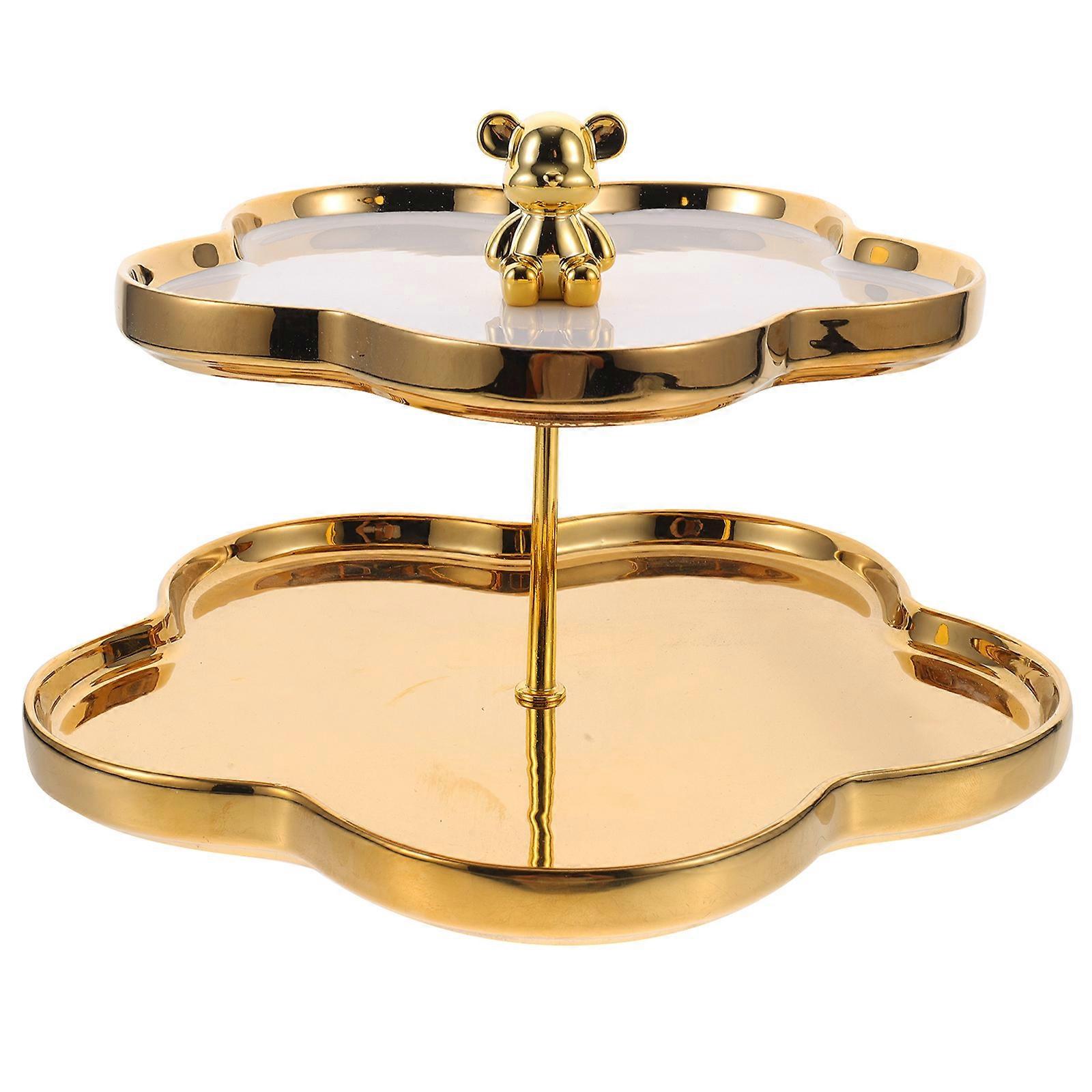 Jewelry Storage Plate Flower Shape Double-Deck Cosmetic Organization Golden 26.5X25.5X18.5CM Stainless Steel 1Pcs