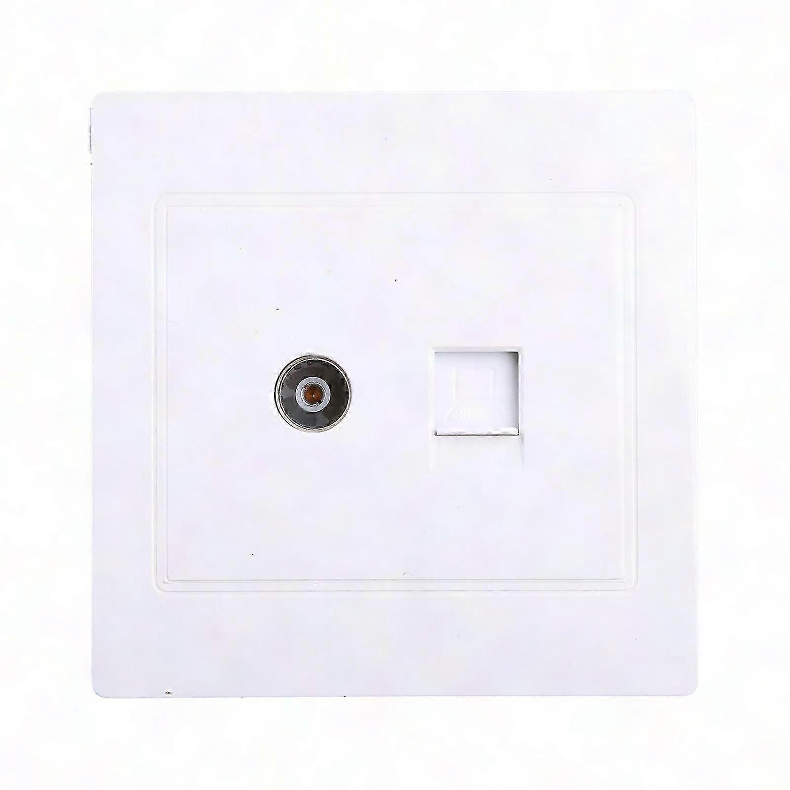 Coaxial Wall Plate with RJ45 Socket and TV Antenna Connection Port