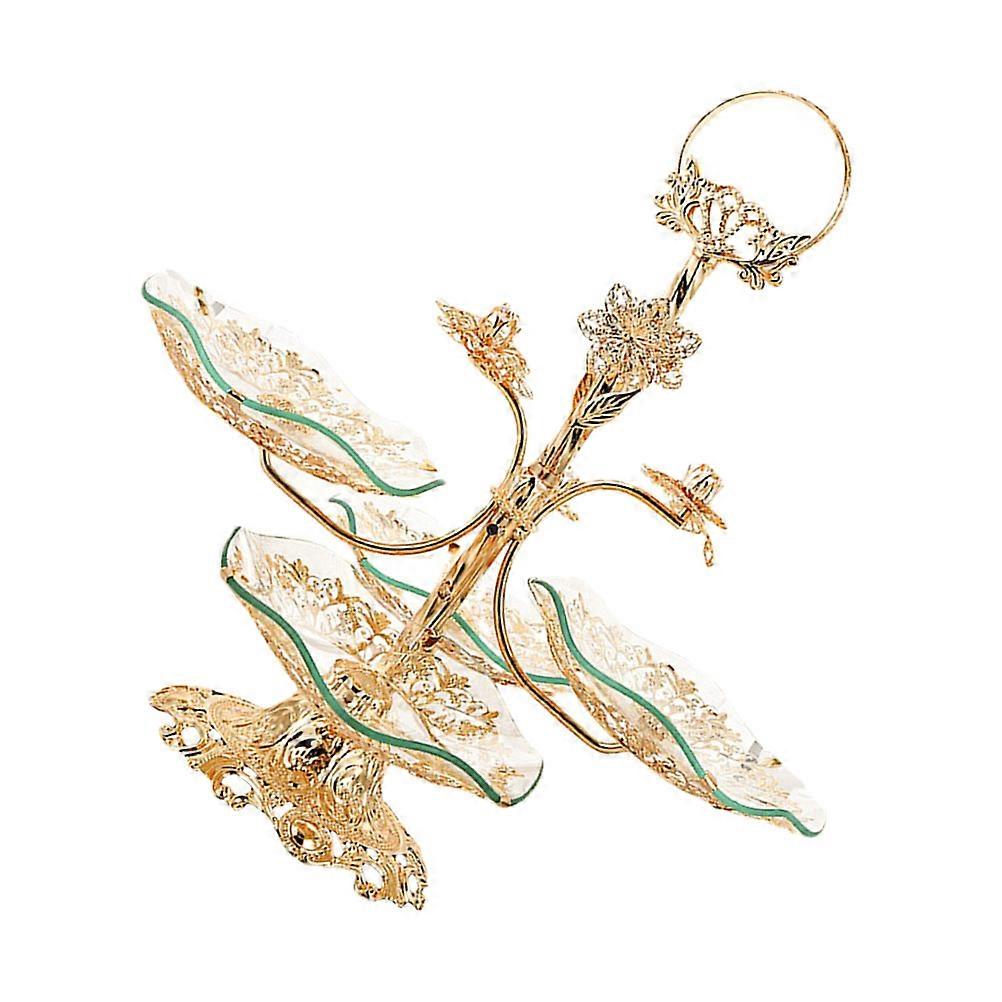 Multi-Layer Fruit Dessert Plate Food Serving Plate Home Use Golden Glass and Iron Material for 1Pcs