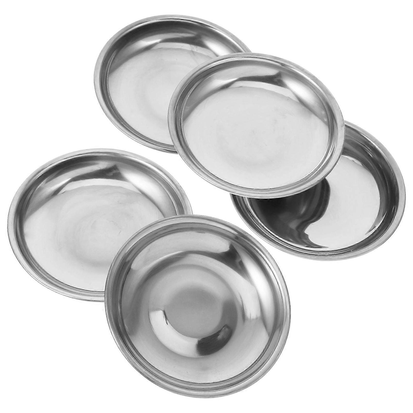 Round Sauce Plate Stainless Steel Snack Plate Commercial Users Stackable 5Pcs