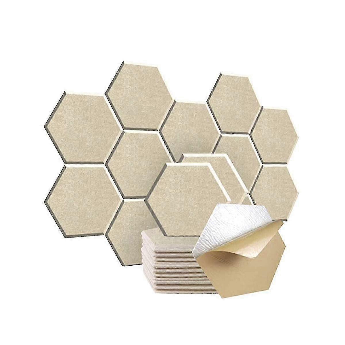 12 Piece Hexagonal Acoustic Panel, 12x10x 0.4Inch, Stylish Acoustic Walls and Office (Light Camel C hwy