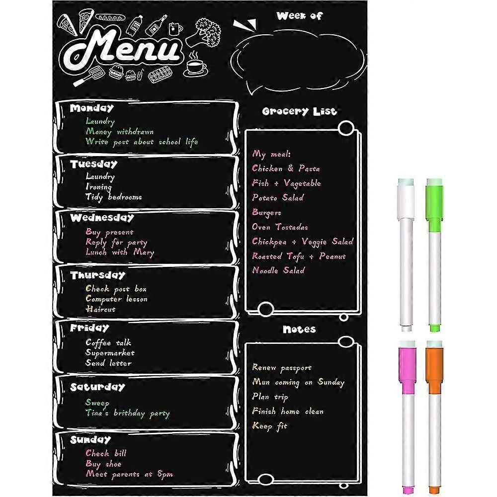 Magnetic Menu Board 11" X 16" Dry Erase Calendar Set With 4 Markers, Fridge Calendar Board With Weekly Meal Planner; Grocery List Kitchen Plan
