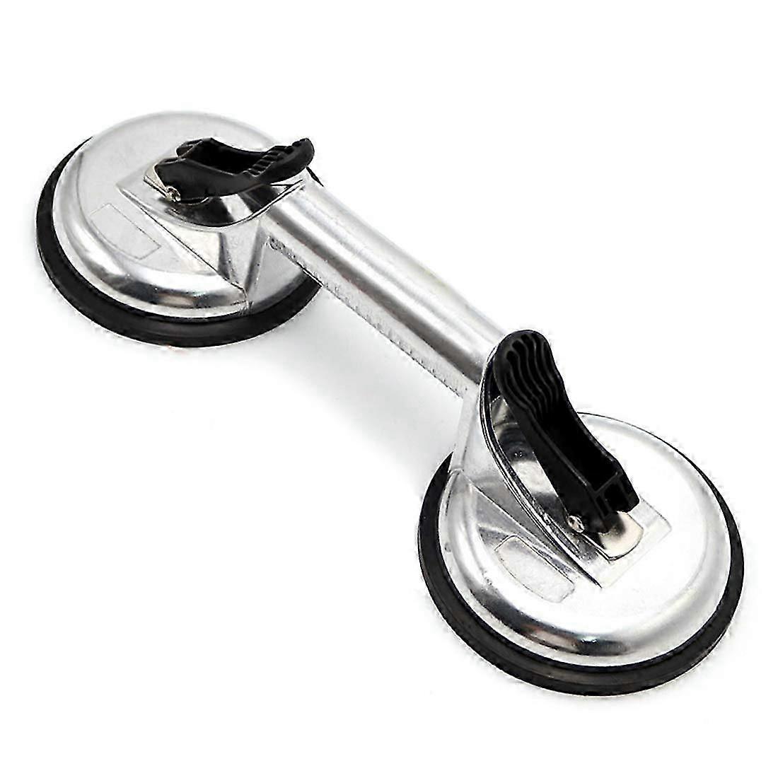 Heavy Duty Aluminum Double Handle Suction Cup Plate Professional Glass Puller/Lifter/Gripper (2 claw silver)