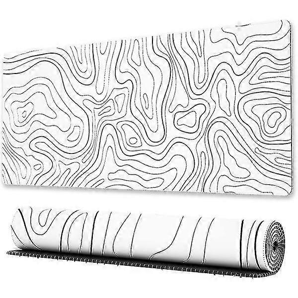Large Gaming Mouse Pad with Stitched Edges, Minimalist Topographic Map Desk Mat, Extended XL Mouse Pad with Anti-Slip Base, 31.5 x 11.8 Inch, White
