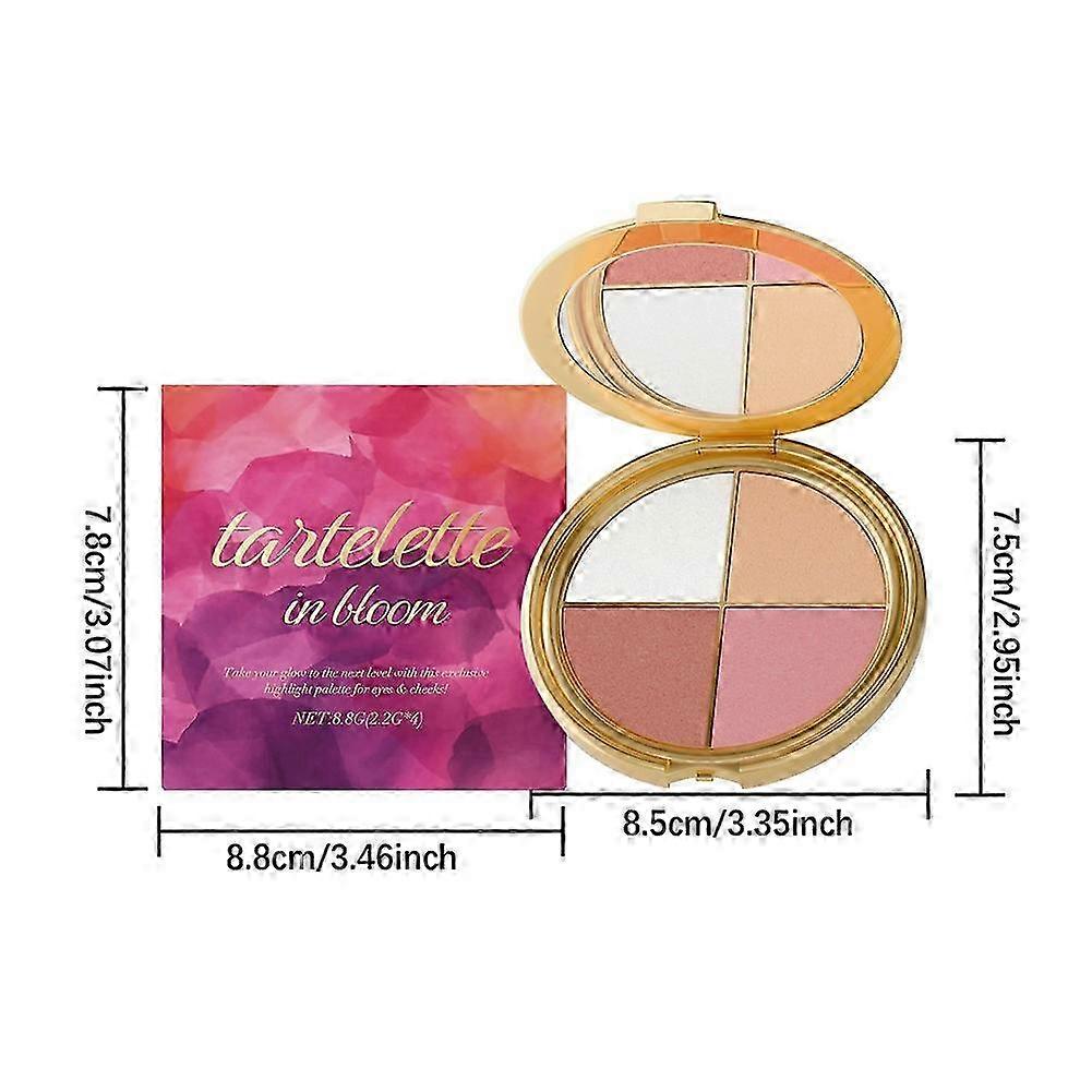 4-Color Multifunctional Palette - Highlighter & Blush with Mica & Vitamin E, 8.8g - Natural Glow, Silky Texture, Travel-Friendly with Mirror