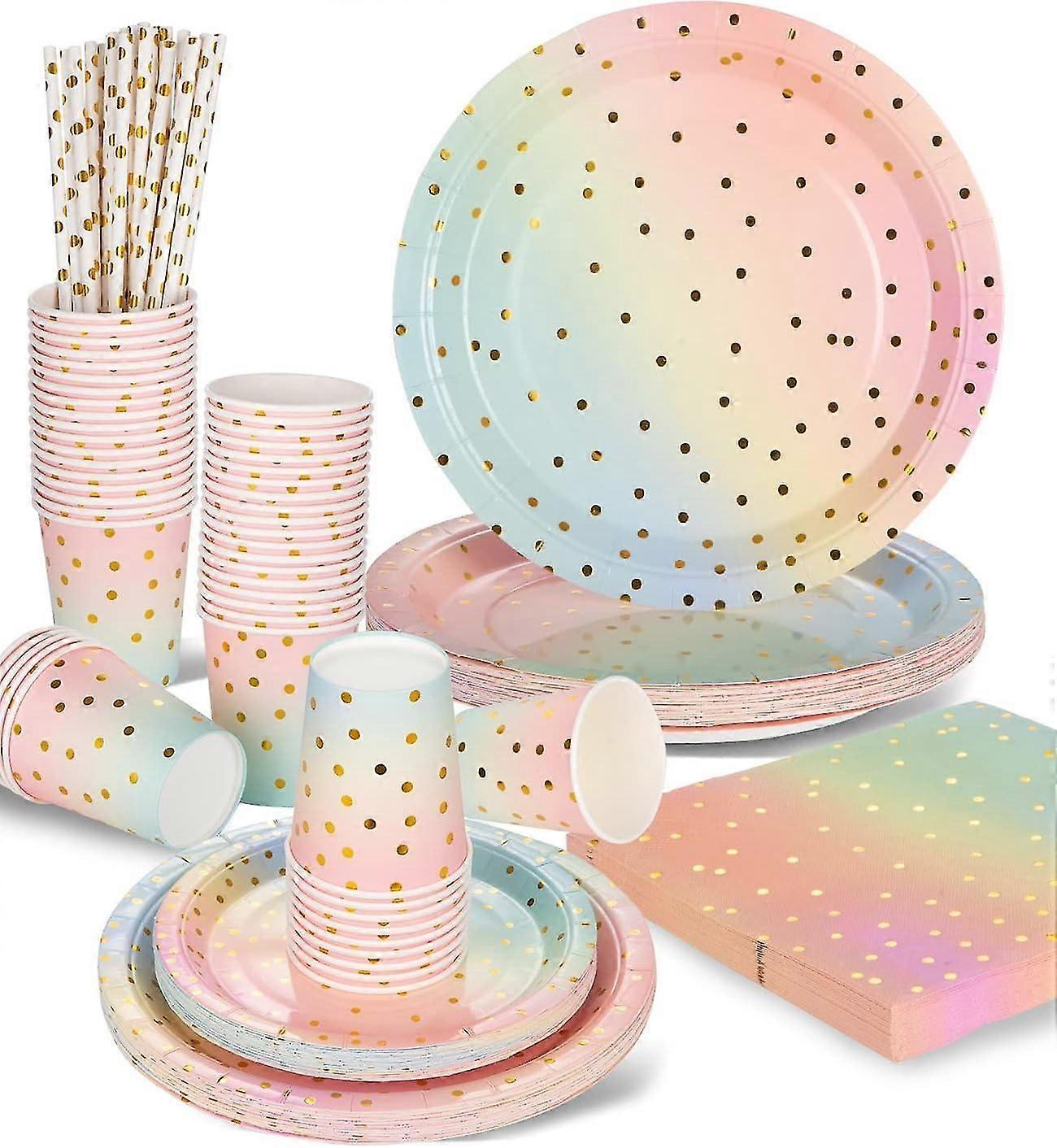 Disposable Plate Disposable Tableware Birthday 125 Pcs Paper Plate Dessert Tableware Kit Plates And Cup Napkin Straw For Various Party And Birthday De