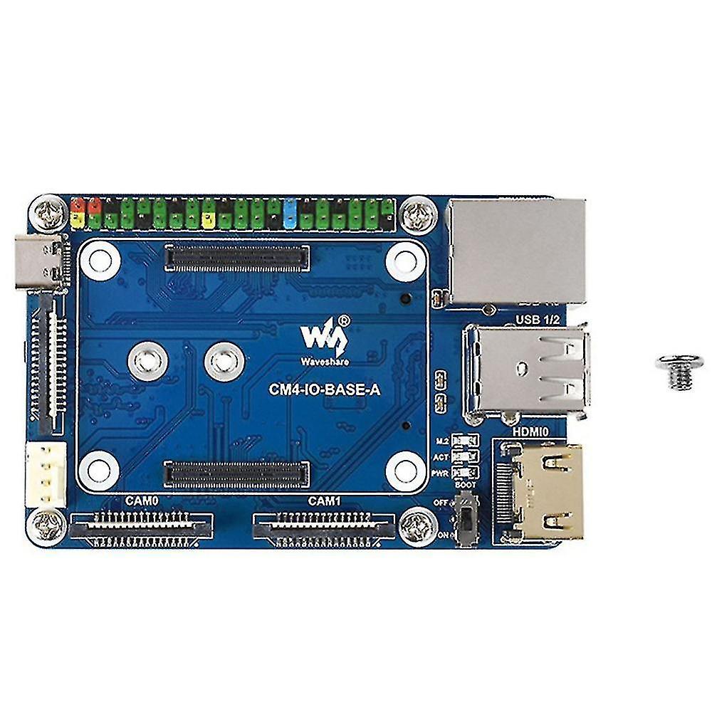 The onboard 40PINGPIO interface and standard CM4 connector support access to Compute Module 4 Lite/eMMC series core boards.Equipped with CSI//FAN//USB/RJ45 Gigabit Ethernet port/-SD card/M.2 and other interfaces, it is more convenient to .For CM4 basic expansion board (type A), it is convenient to learn and evaluate the For computing module or directly integrate it into the product. functions, mini size, only the size of a bank card.Although the board is small, it has all the internal organs.Product name: Expansion board: CM4-IO--AInterface: CSI//FAN/-/USB/RJ45 Gigabit Ethernet/-sd card/M.2Working voltage: 5V supply current: 3APurpose: dedicated plate for computing modulecolour:BlueMaterial:PCBsize:85 x 56mmPackage Contents:1 x Expansion Board1 x ScrewOnly the above package content, other products are not included.Note: Light reflection and different displays may the color of the item in the a little different from the real thing. The measurement allowed error is +/- 1-3cm.