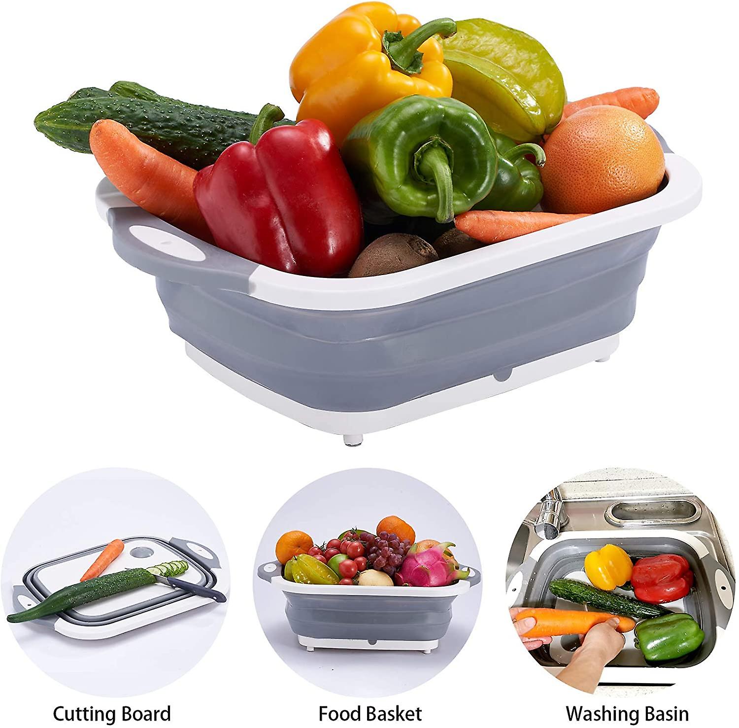 Collapsible Cutting Board with Colander, Foldable Dish Tub, Multifunctional Washing Basket for Campi