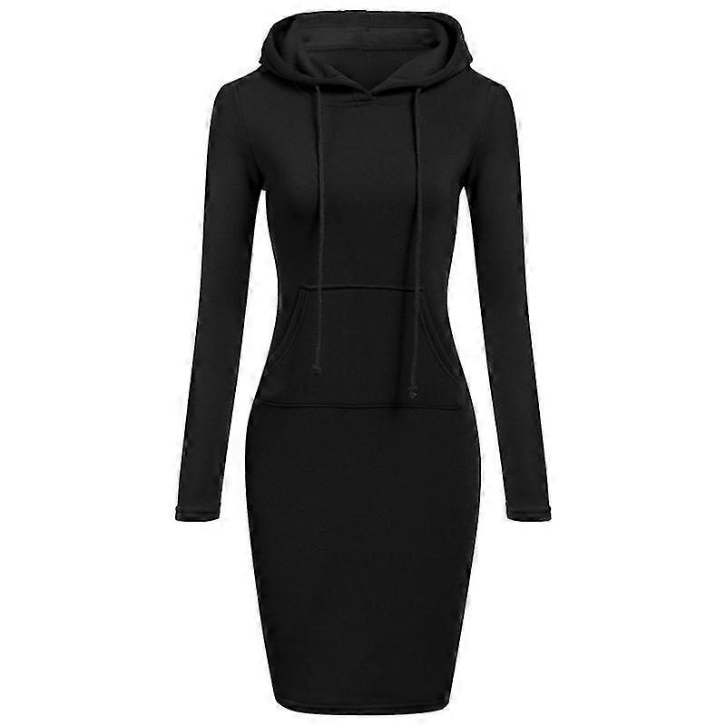 Solid Color Women Long Sleeve Pocket Bodycon Hooded Sweatshirt Hoodies Dress