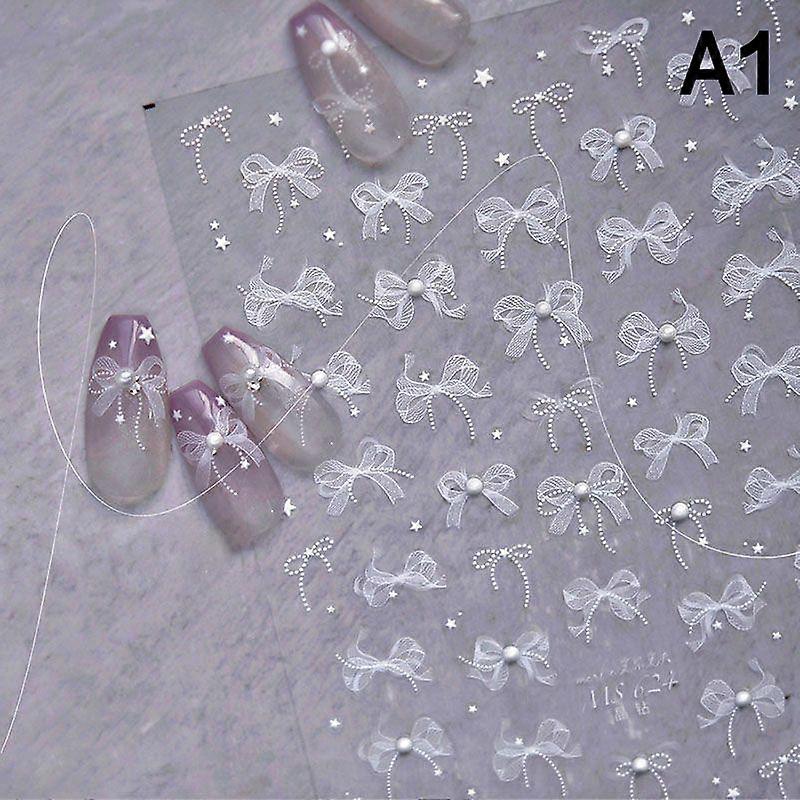 Pearl Lace Bow Shape Nail Sticker With Diamonds Relief Decal Enhancement Adhesive Sticker Stereoscopic DIY