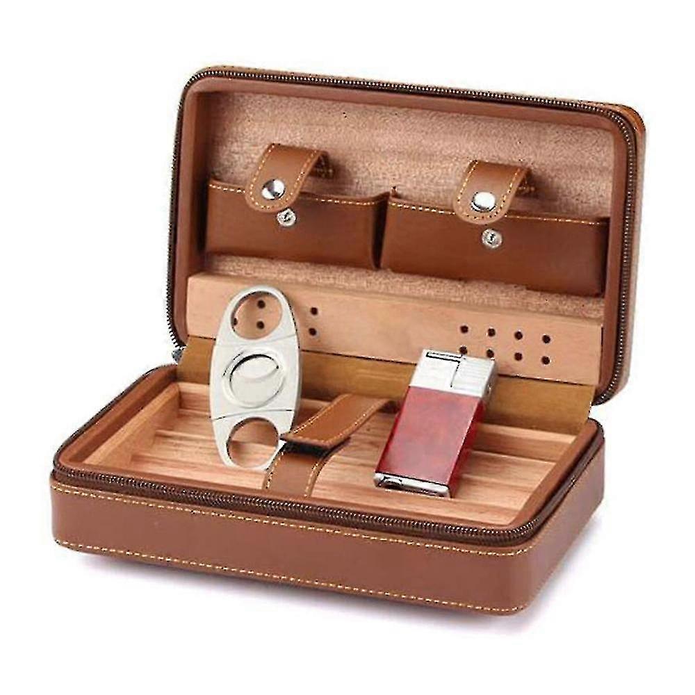 Leaer Travel Cigar Humidor Case, Portable Cedar Wood Humidifier Humidifier For 4
