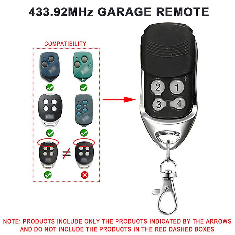 For Ditec GOL4 BIXLG4 BIXLP2 BIXLS2 Compatible 433.92MHz Garage Gate Remote NOTE: The product you will receive is the one shown by the arrow, it is a universal remote control, other than that no other items appearing in the picture are included. Description: 1. Type of programming: Programming with the receiver 2. Number of channels: 4 3. Code: rolling code 4. Frequency: 433.92mhz 5. Woring Range: 10-50 m (open space) 6. Power supply: CR2032-3V 7. Remote come with Battery 8. Security of use: dynamic code provides a high level of security, non-copyable code. 9. Your Old remote must be same as the advertisement , new remote do not compatible with other remotes Compatible models: For DITEC GOL4 For DITEC BIXLG4 For DITEC BIXLP2 For DITEC BIXLS2 NOTE : NOT FOR DITEC GOL4C Package Includes: 1* Remote Control Note: 1. Please allow 1-3 mm error due to manual measurement. Please make sure you don't mind before ordering. 2. Please allow 1-3g weight error. Please make sure you don't mind before ordering. 3. Due to the lighting of the photos and the difference of monitors, the pictures may not reflect the actual color of the real item. Please make sure you don't mind before ordering, thank you!