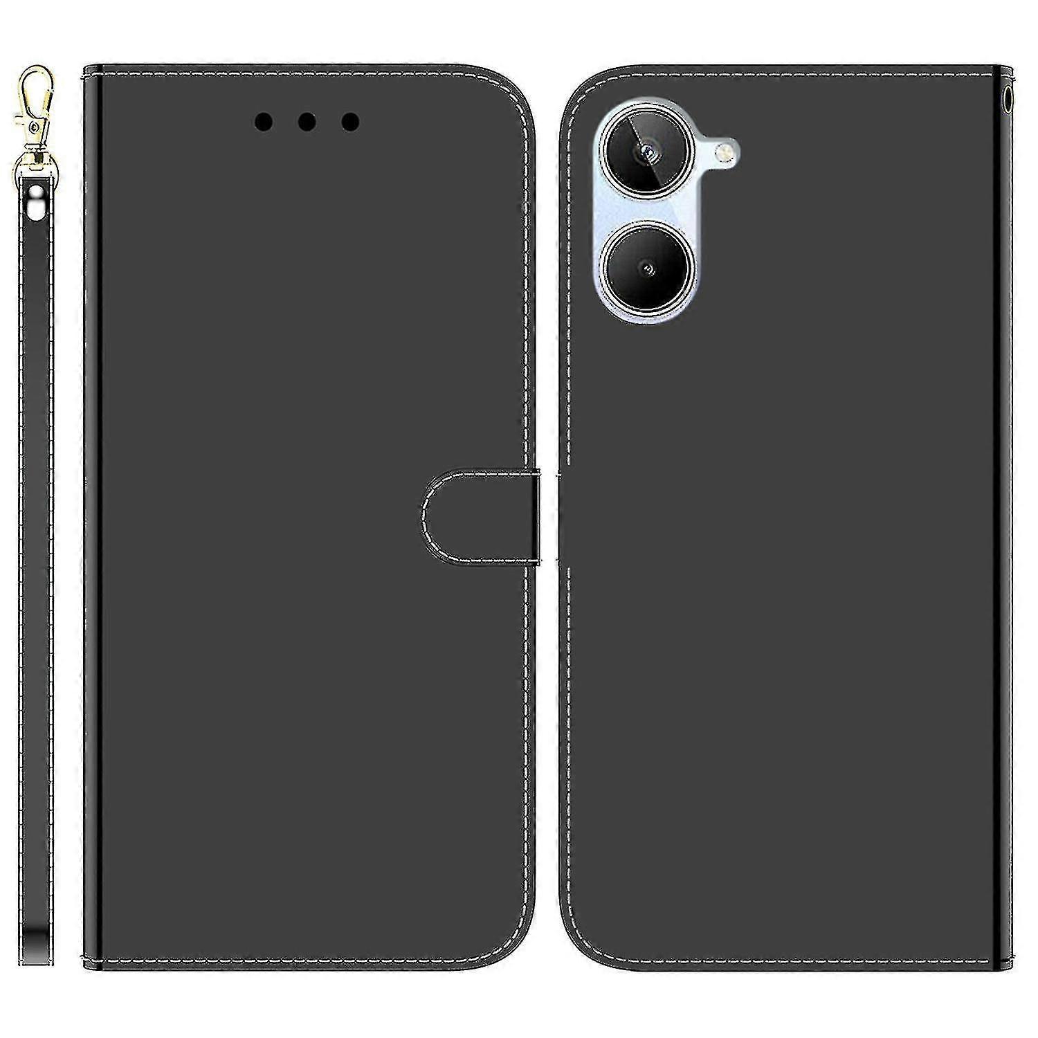 For Realme 10 4g Pu Leather Stand Wallet Phone Case Mirror-like Surface Flip Cover With Strap