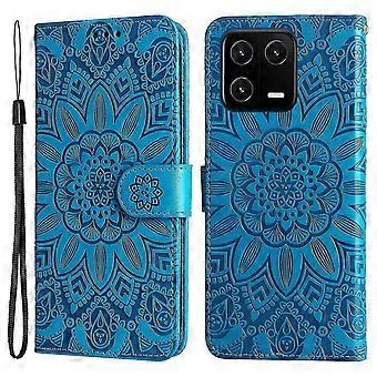 For Xiaomi 13 Pu Leather Sunflower Imprinted Full Protection Phone Case Stand Wallet Anti-scratch Folio Flip Cover With Wrist Strap