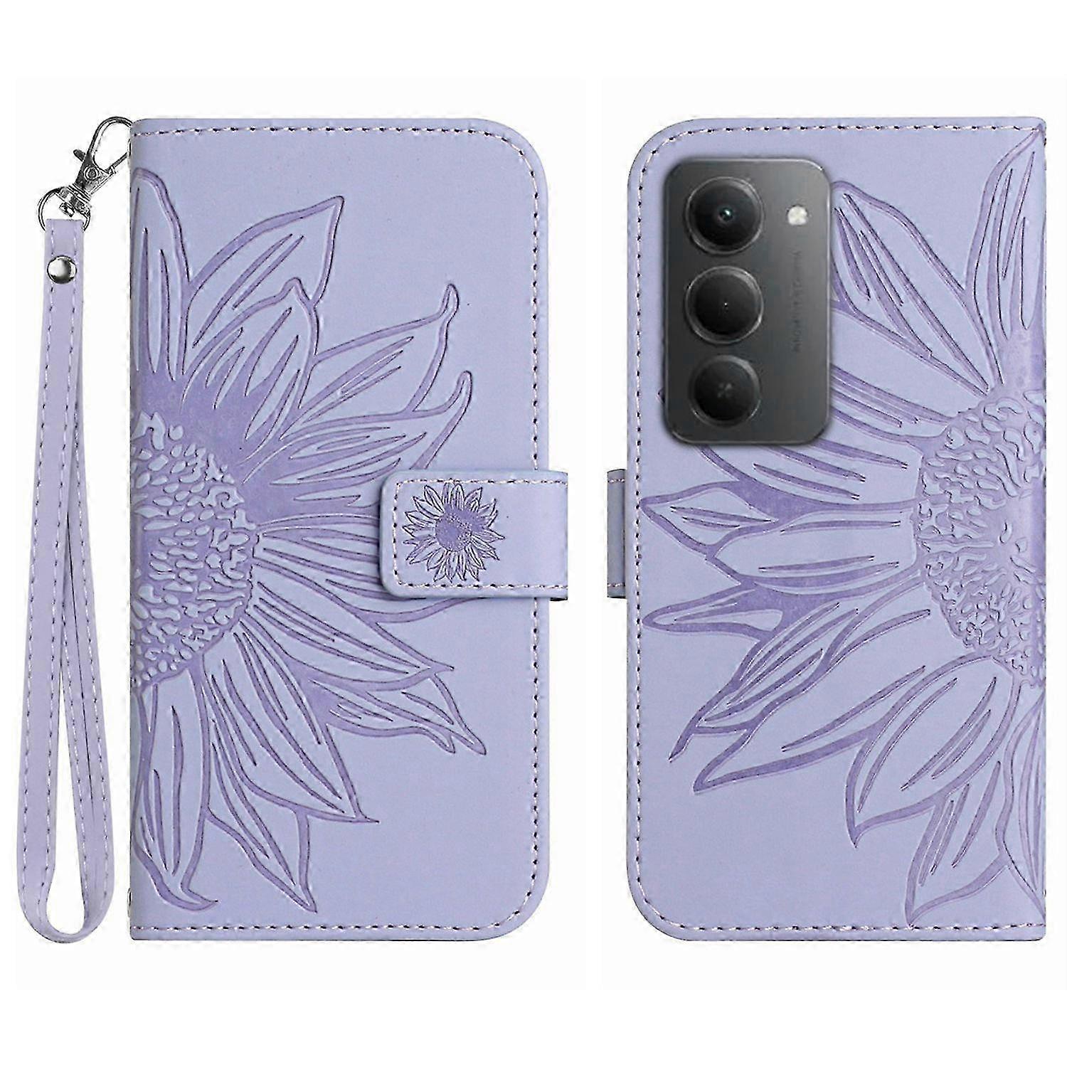For Xiaomi Redmi 15 5G Case Sunflower Imprint Leather Wallet Phone Cover with Wrist Strap