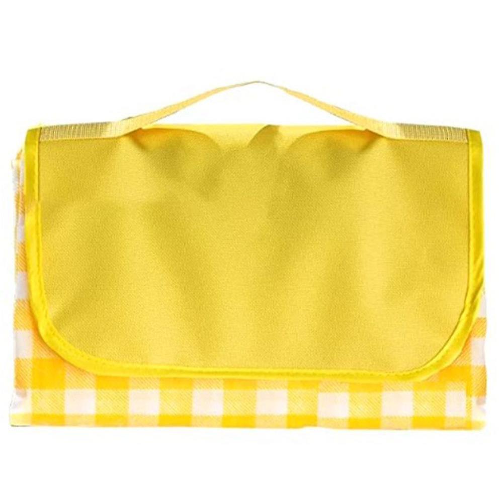 IDEAL SIZE: Outdoor picnic mats measure 79 inch x 79 inch / 200 x 200 cm, providing enough space for 6-8 people, great for camping in a bit cooler, spring/autumn and when the beach is slightly damp, comfortable or lie down when you go to a picnic. WIDE APPLICABILITY: Perfect for summer, winter or any weather, whether you use this blanket as a beach mat, picnic blanket, camping blanket, family activity, outdoor blanket or indoor , this blanket will fit perfectly. It is widely used indoors and outdoors. FOLDABLE AND PORTABLE: The blanket weighs only 1.2 lbs, it can be folded into a small size, secured with a strap, and it is lightweight and easy to carry outdoors. or quickly deploy a picnic blanket in just a few easy steps. Waterproof and Sandproof: The picnic blanket is made of high quality oxford fabric and PVC, it is durable and strong, waterproof and sandproof, soft and prevents dirt/water from entering from the bottom of the mat. It will help you stay dry and comfortable on the grass or sand. EASY TO CLEAN: This picnic mat is waterproof on the front and back, so if it gets dirty or wet, you can just wipe or rinse it off. Easy to clean and quick drying in the . size: 200 x 200cm : Oxford cloth + waterproof PVC colour: yellow Package Contents: 1 x picnic mat Only the above package content, other products are not included. Note: Light reflection and different displays may cause the color of the item in the a little different from the real thing. The measurement allowed error is +/- 1-3cm.