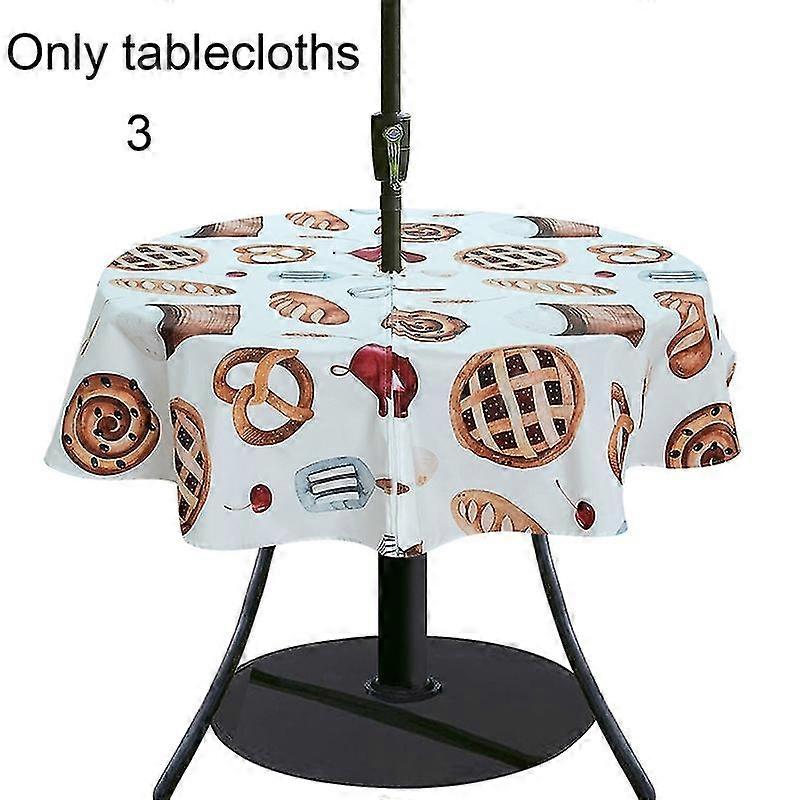 Waterproof Wear-resistant Table Cloth With Umbrella Hole Round Stripe Flower Pattern Polyester Tablecover For Outdoor Q