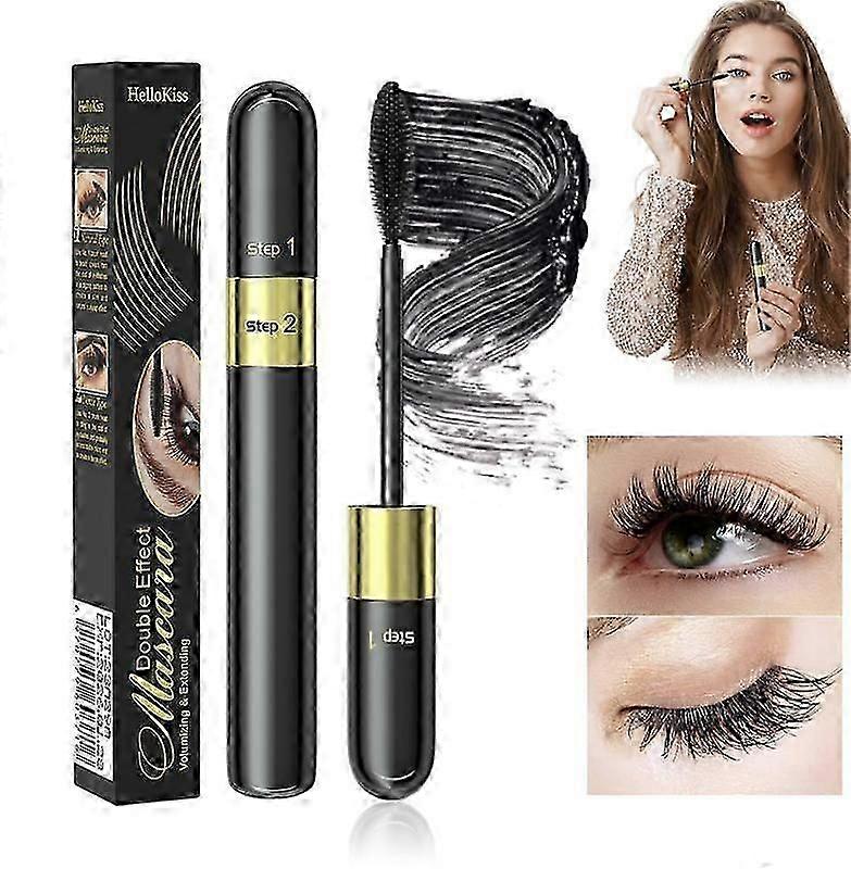 Mascara Waterproof & Smudge-Proof - 2-1 Long-Lasting Mascara Black Volumizing and Lengthening for Eye Makeup, No Clumping, Curling Eyelashes, Vegan &