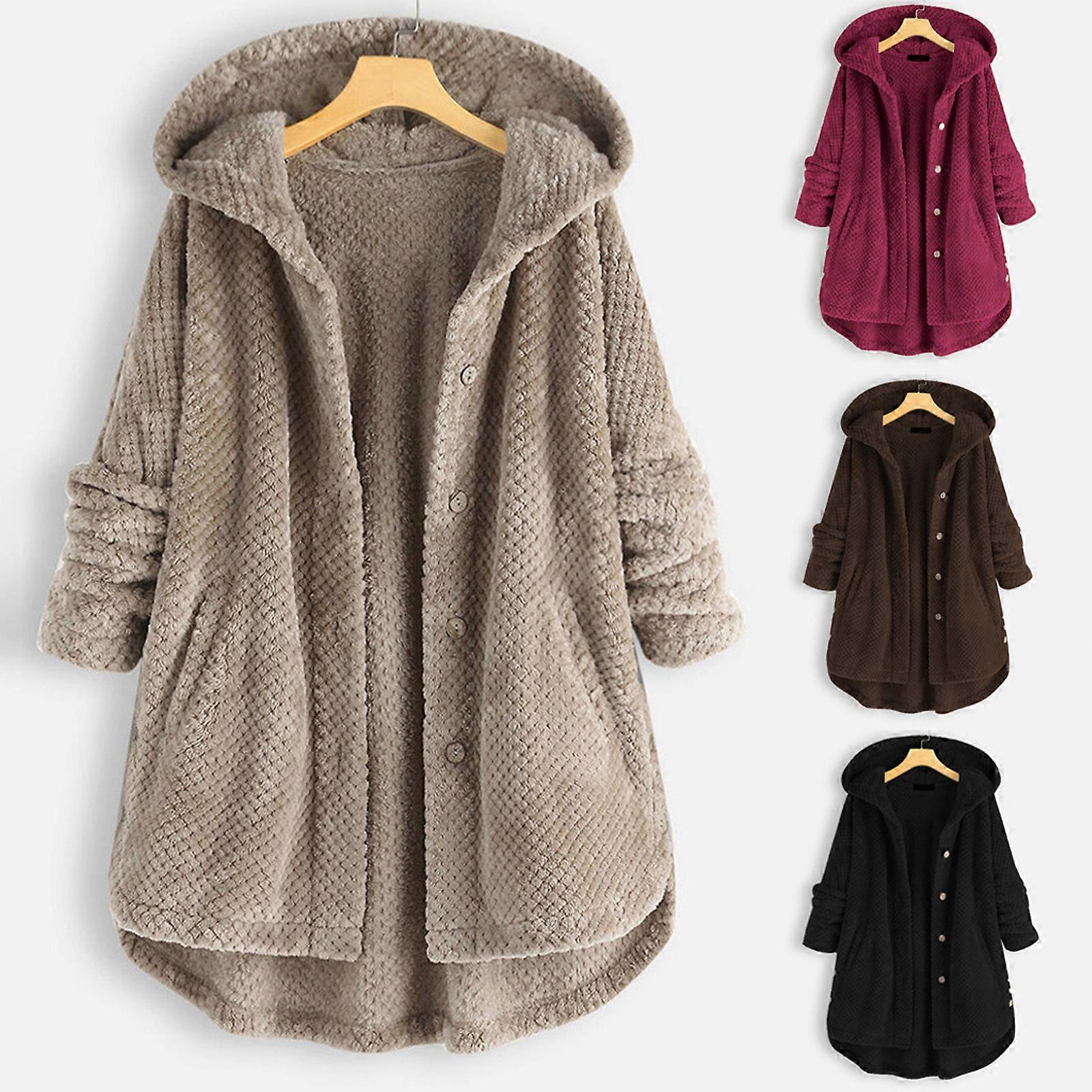 Mantel Berkerudung Saku Lengan Panjang Tidak Teratur Bulu Domba Wanita Musim Dingin 2021 Mantel Wanita Musim Gugur Musim Dingin