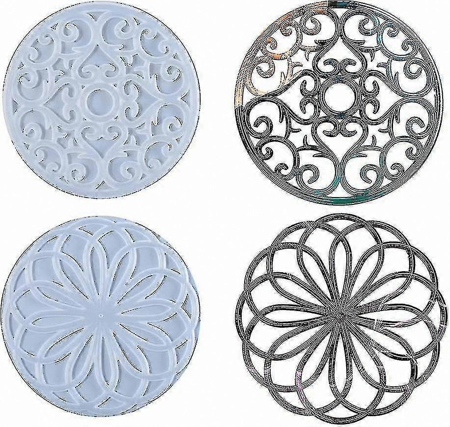 Mandala Coaster Mold Set, 4 Silicone Casting Mats for Resin Art Projects