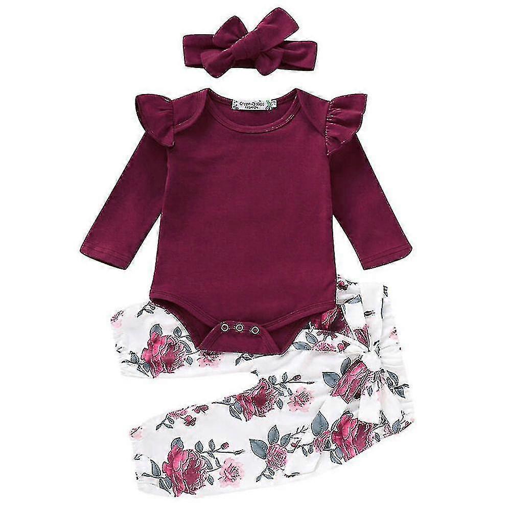 Mike Infant Baby Girls Outfit Romper Tops Floral Pants Trousers Headband Set