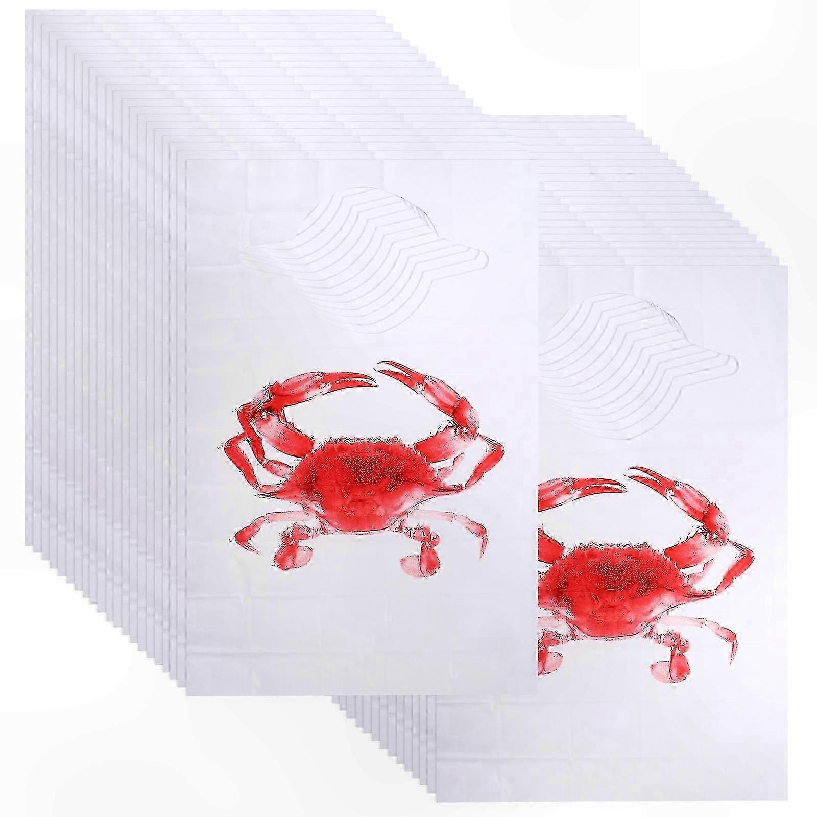 Sleeveless Plastic Aprons with Crab Design for Seafood Meals, Waterproof, 100 Count