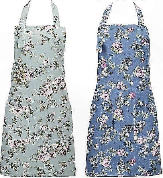 Adjustable Floral Aprons for Women, 2 Pack Cooking and Baking Apron with Large Pockets for Kitchen Garden Use