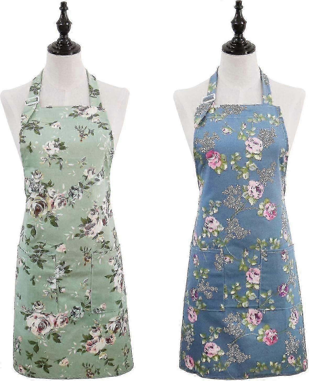 Floral Aprons For Women, 2 Pack Kitchen Cooking Aprons With 2 Pockets, Cute Baking Gifts For Bakers, Gardening Apron
