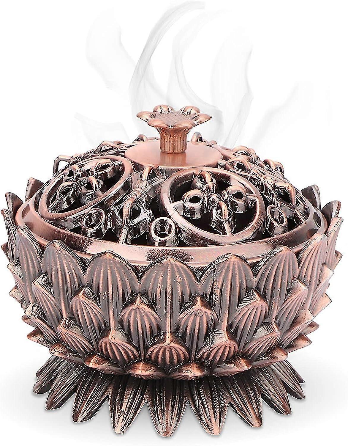 Lotus Shape Incense Burner, Small Charcoal Censer Holder Censer Holder Home Office Decoration (flat Top Lotus Trumpet (old Red)