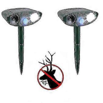 مبيد الغزلان بالموجات فوق الصوتية - حزمة من 2 - تعمل بالطاقة الشمسية - تخلص من الغزلان في 48 ساعة طويلة